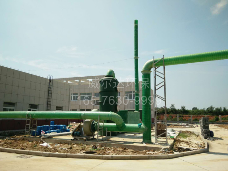 废气处理设备的工作远离是将气体中的污染物分离出来,转化为无害物质,以达到净化气体的目的。它属于微分接触逆流式,塔体内的涂料是气液两相接触的基本构件。塔体外部的气体进入塔体后,气体进入填料层,填料层上有来自于顶部的喷淋液体,并在填料上形成一层液膜,气体流经填料空隙时,与填料液膜接触并进行吸收或中和反应,填料层能提供足够大的表面积对气体流动又不致造成过大的阻力,经吸收或中和后的气体经除雾剂收集后,经出风口排除塔外,吸收剂是处理废气的主要媒体,它的性质和浓度是根据不同废气性质来选配,其处理单位气体的耗用量,是通过计算吸收剂与惰性气体的摩尔流量的比值来确定的。废气由风机自风管吸入,自下而上穿过填料层;循环吸收剂由塔顶通过液体分布器,均匀的喷淋到填料层中,沿着填料层表面向下流动,进入循环水箱,由于上升气流和下降吸收剂在填料中不断接触,上升气流中流质的浓度越来越低,到塔顶时达到排放要求。液膜上的液体在重力作用下流入储液箱,并由循环泵抽出循环。